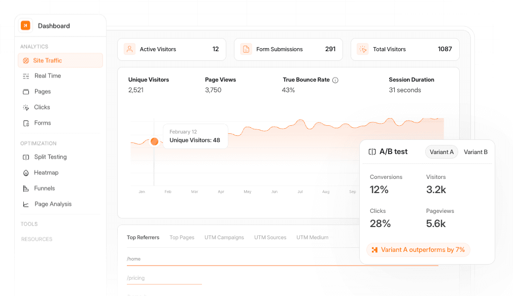 Humblytics takes a different approach. Instead of requiring marketers to manually configure tracking for every button click and form submission, the platform automatically captures everything with a single script. Then it intelligently parses the data to surface only the insights that matter.